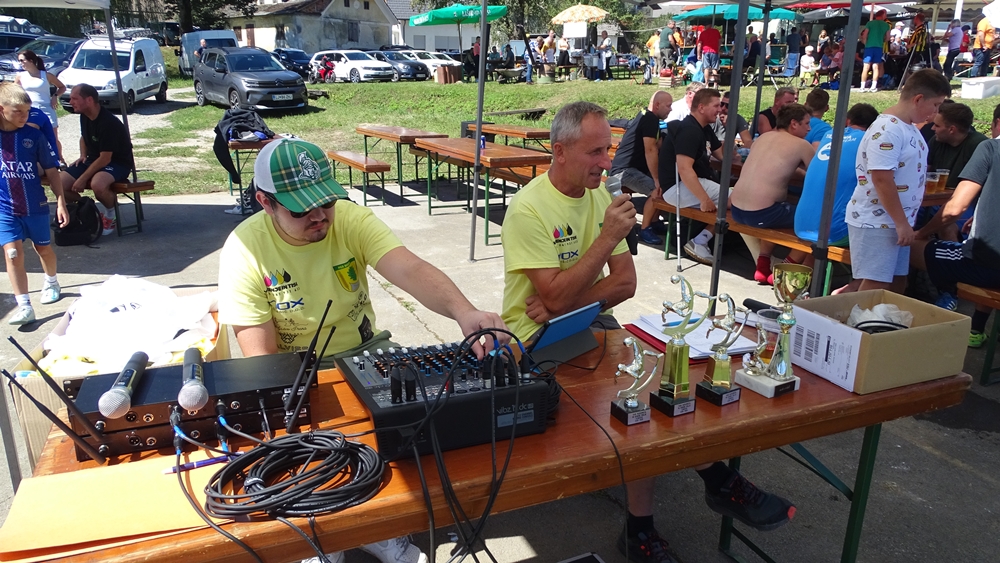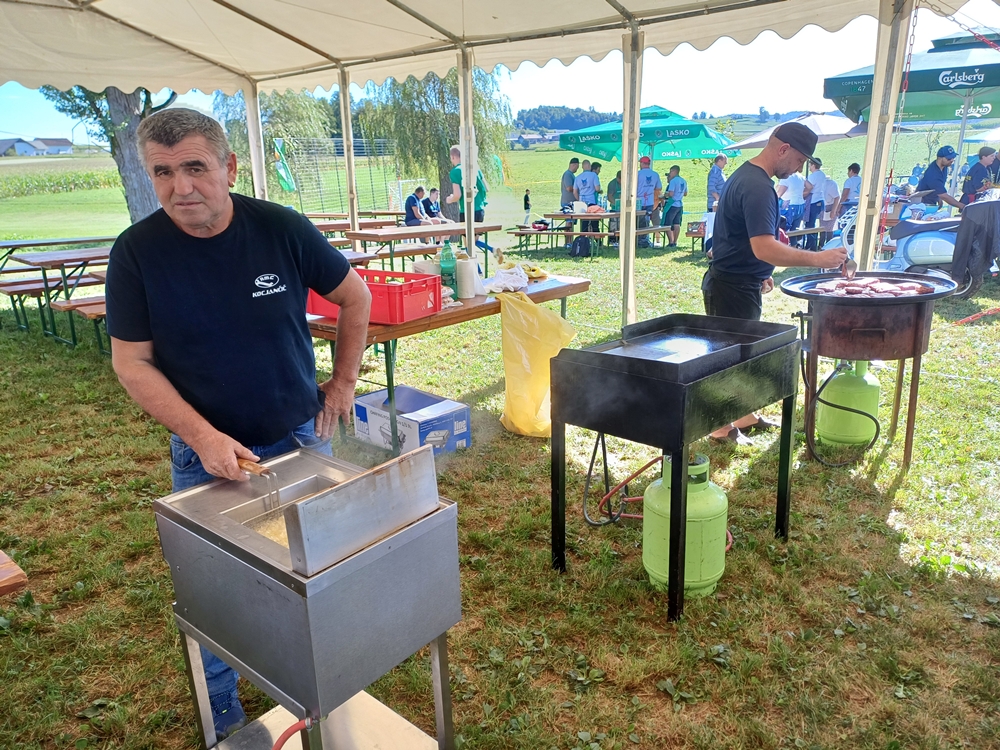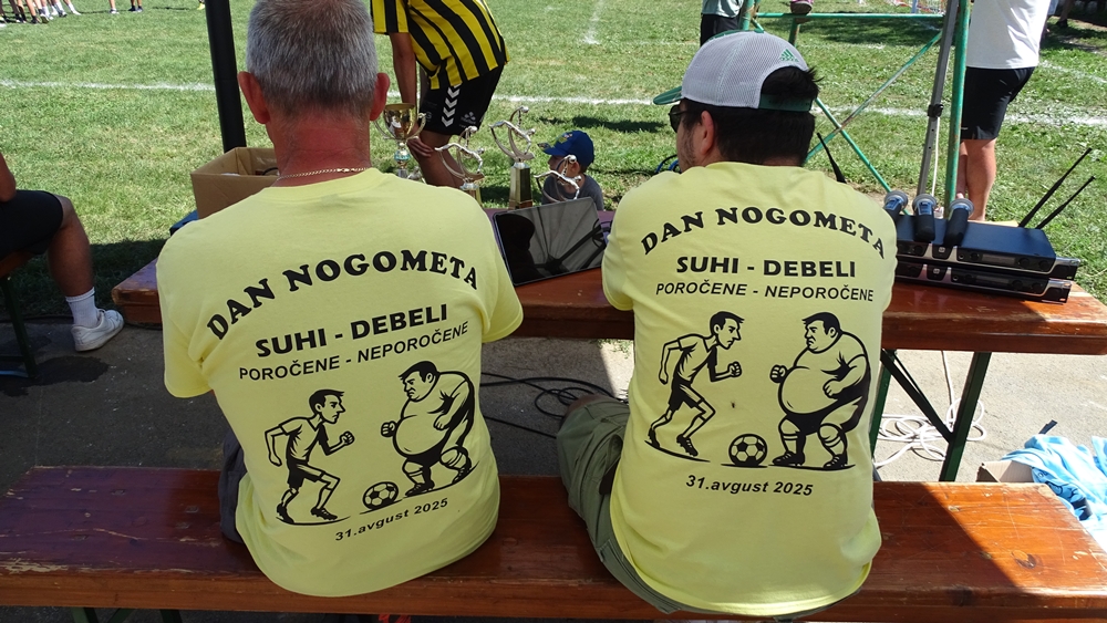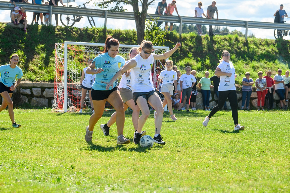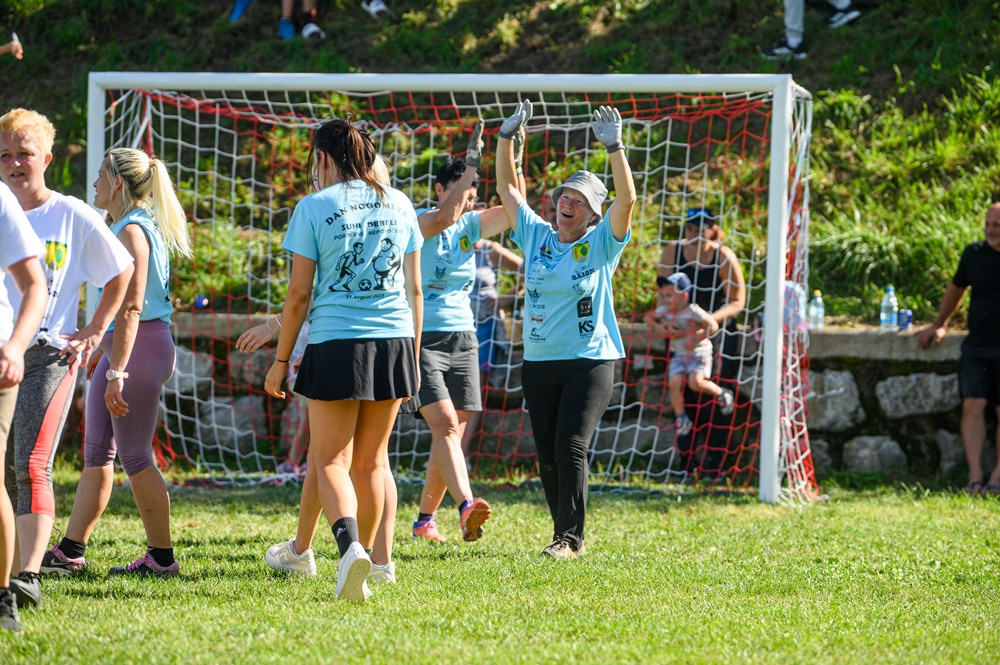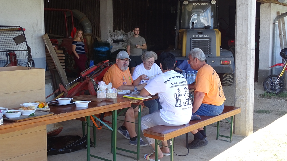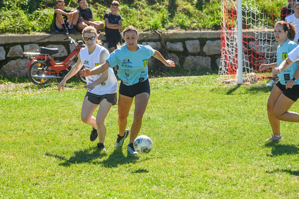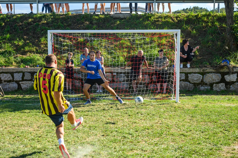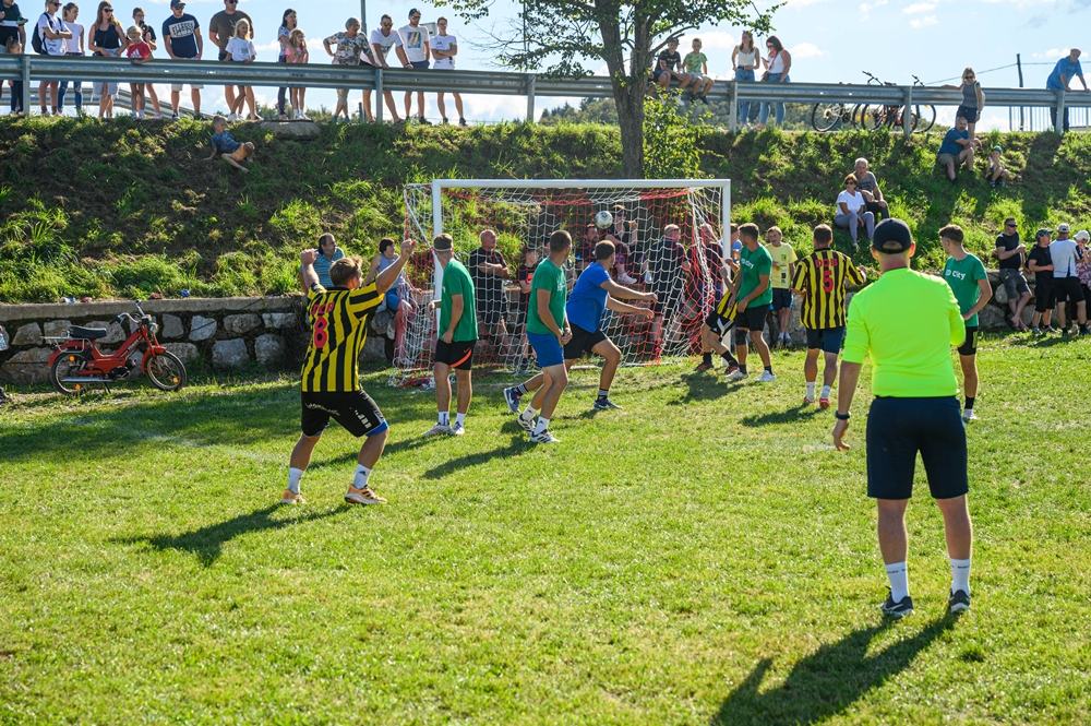 Dopoldne je ob nogometu in kuhanju golaža hitro minilo in na igrišče so stopile nogometašice – POROČENE proti NEPOROČENIM. Tekma se je začela z nekaj zamude, saj je sodnica »Ivana iz Ukrajine« zamujala, a po odlični predstavi in zabavnih komentarjih so slavile poročene. Pred moško tekmo smo izvedli še tradicionalno dobusko igro »bacanje kamena sa ramena«, kjer je bil najboljši Uroš Kristan, ki je kamen zalučal skoraj 11 metrov in si s tem prislužil »prestižno« nagrado.