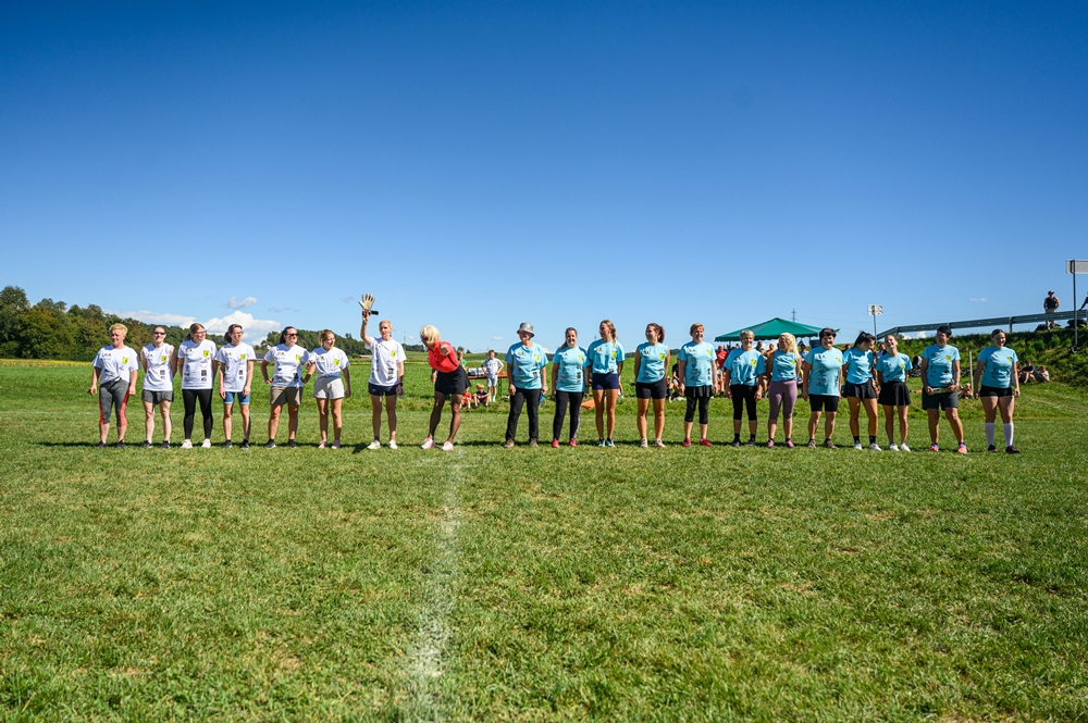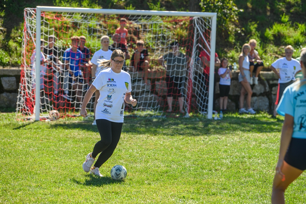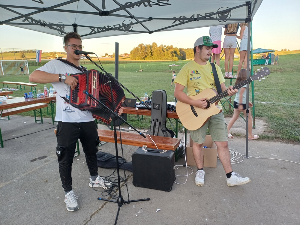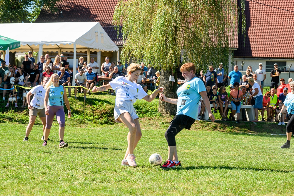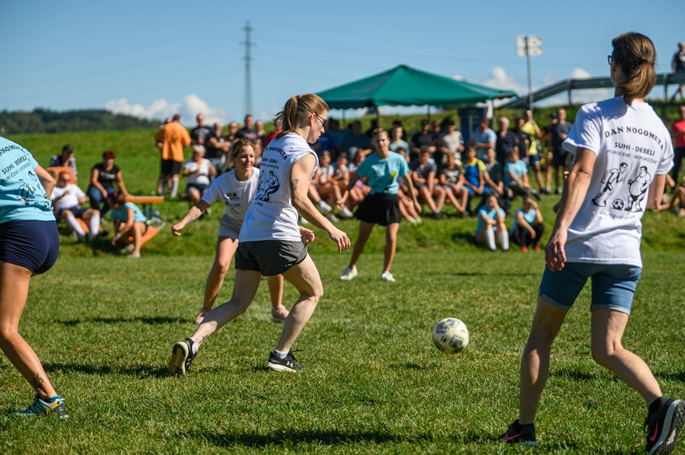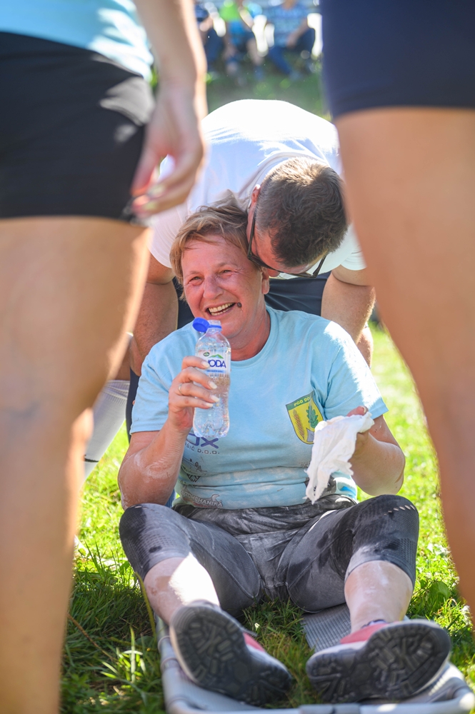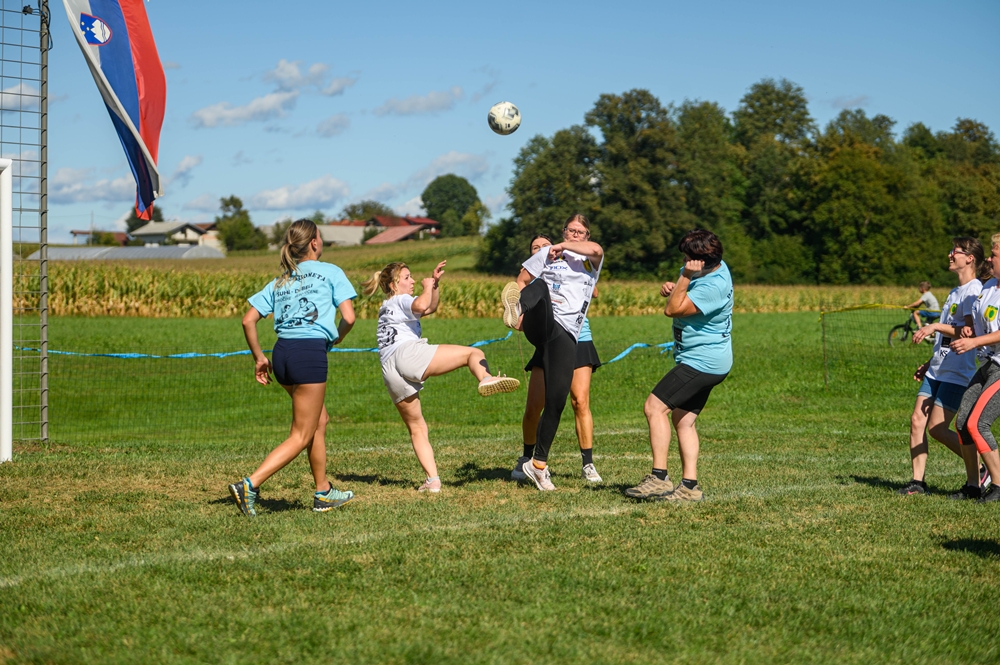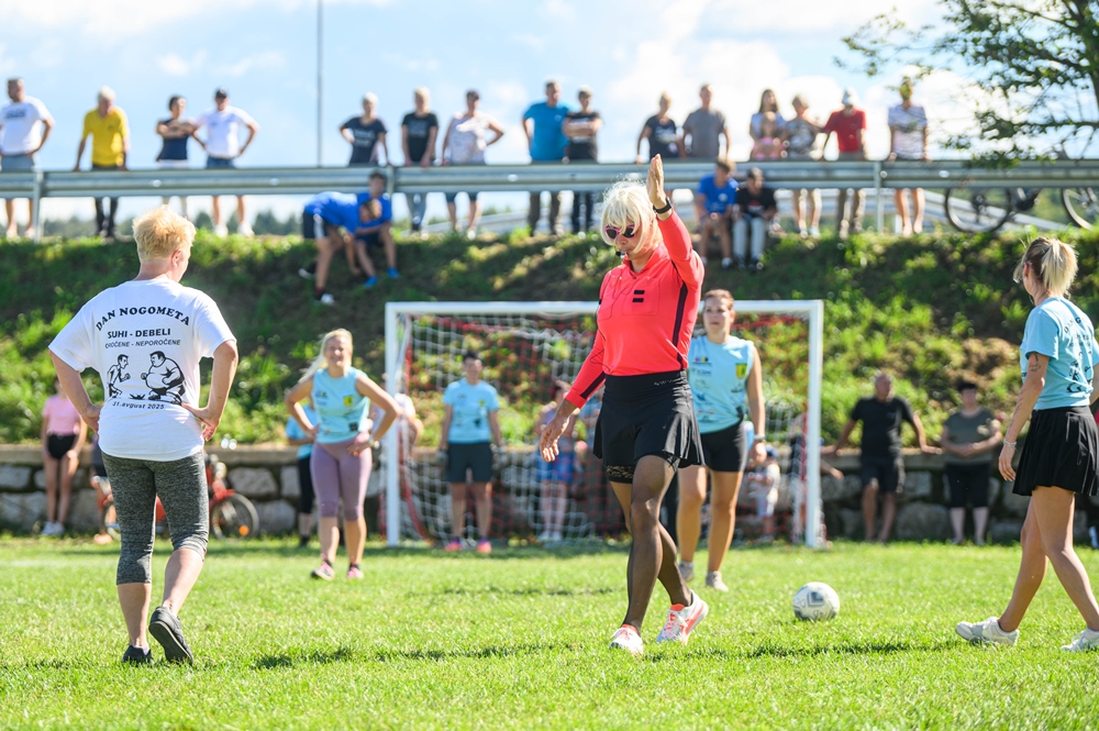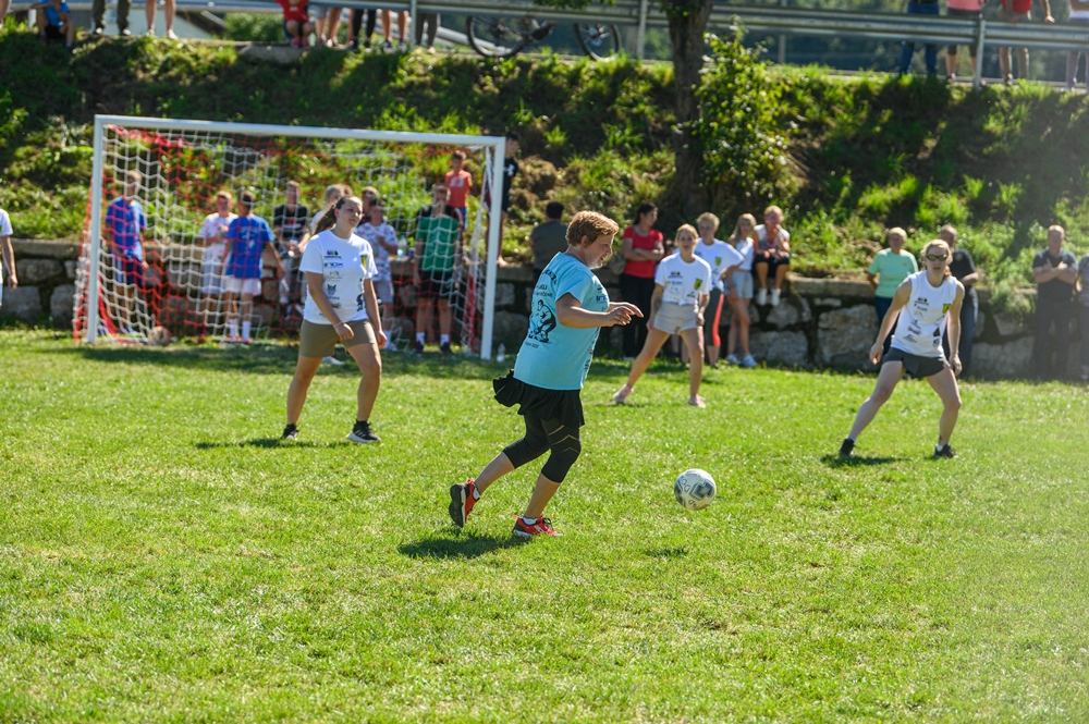 Dopoldne je ob nogometu in kuhanju golaža hitro minilo in na igrišče so stopile nogometašice – POROČENE proti NEPOROČENIM. Tekma se je začela z nekaj zamude, saj je sodnica »Ivana iz Ukrajine« zamujala, a po odlični predstavi in zabavnih komentarjih so slavile poročene. Pred moško tekmo smo izvedli še tradicionalno dobusko igro »bacanje kamena sa ramena«, kjer je bil najboljši Uroš Kristan, ki je kamen zalučal skoraj 11 metrov in si s tem prislužil »prestižno« nagrado.