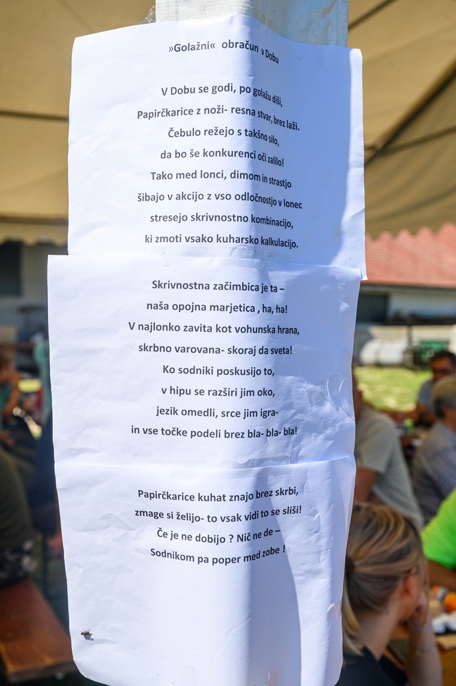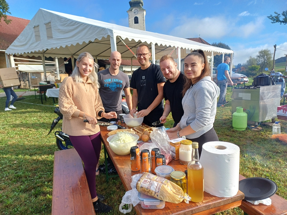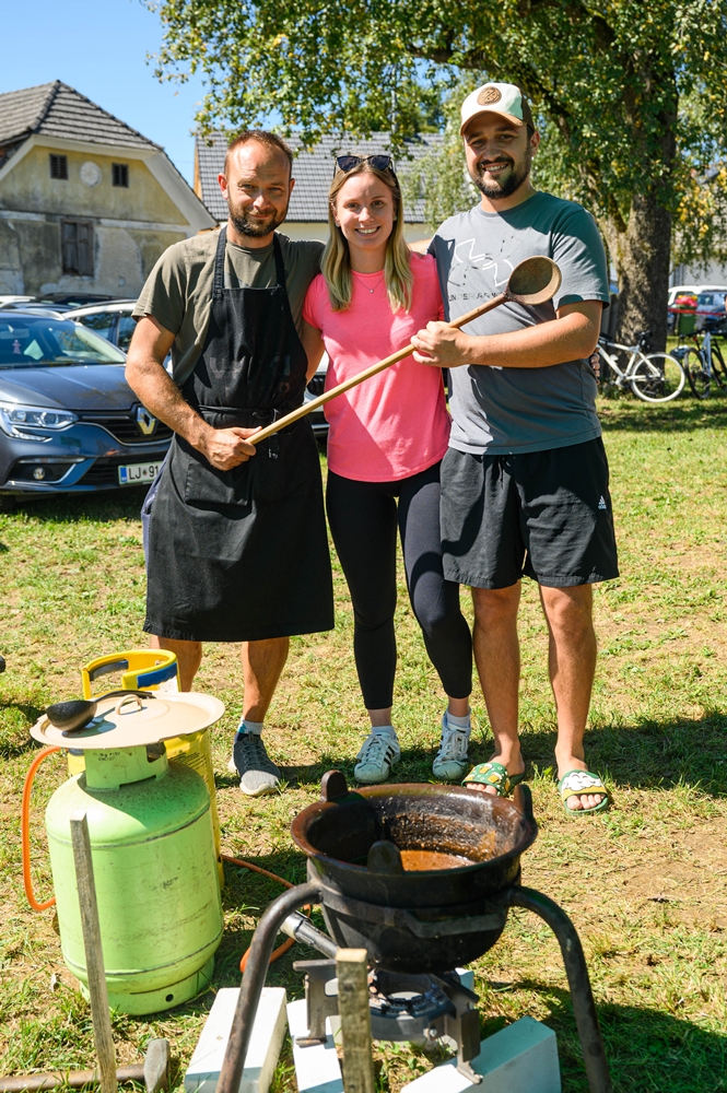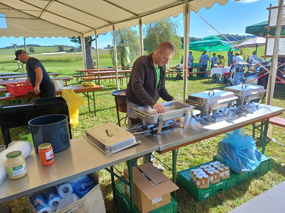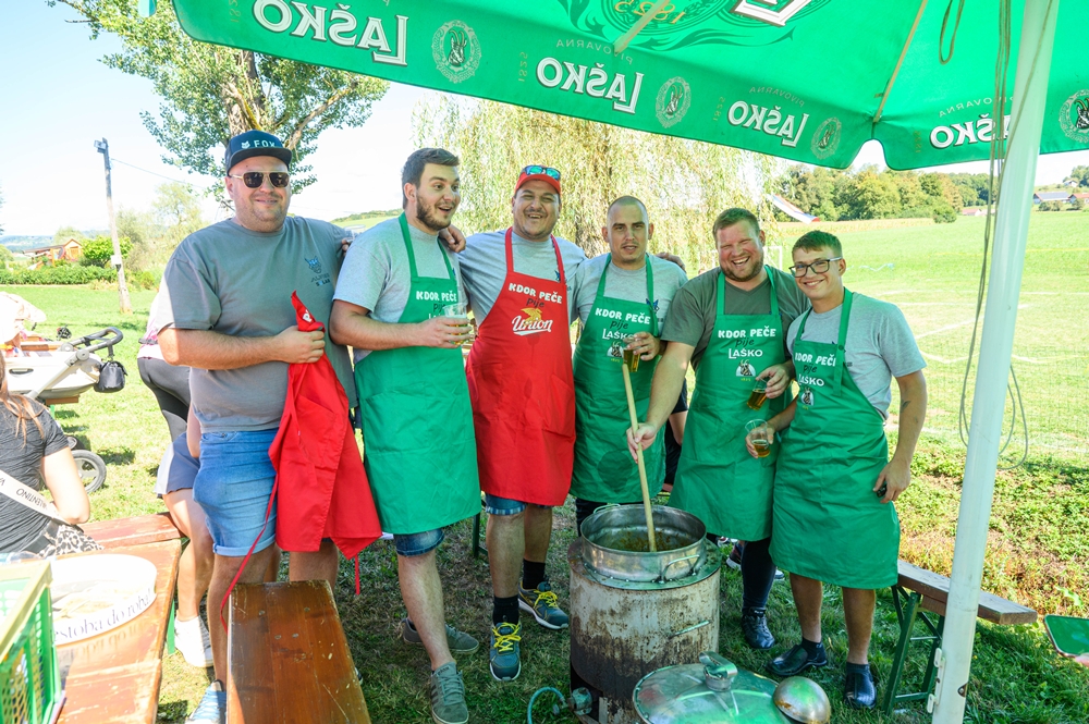 Že zjutraj smo osmim ekipam razdelili meso in čebulo za kuhanje golaža na prostem. Ob 13.30 uri so ekipe komisiji oddale vzorce, po dobri uri pa smo dobili rezultate. Komisija v sestavi Darinka Brzin, Erika in Ivan Bišof ter Marko Gale je za najboljšega razglasila golaž ekipe »Če si dober, nisi slab« z glavnim kuharjem Davidom Tekavčičem.