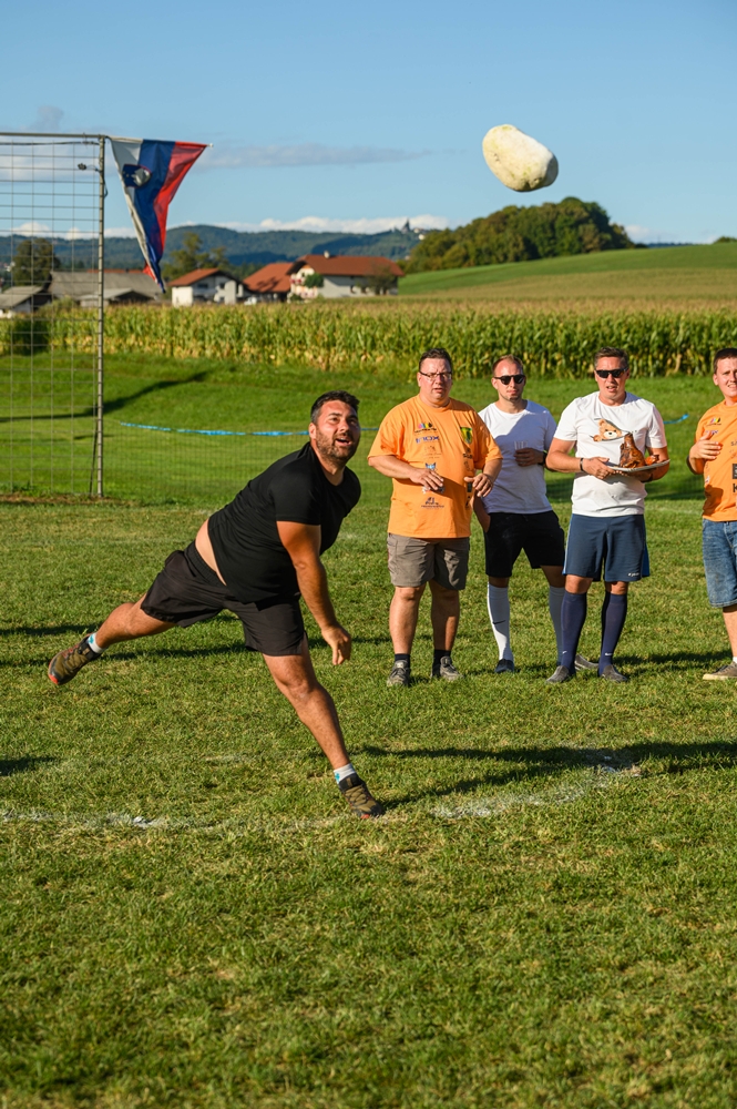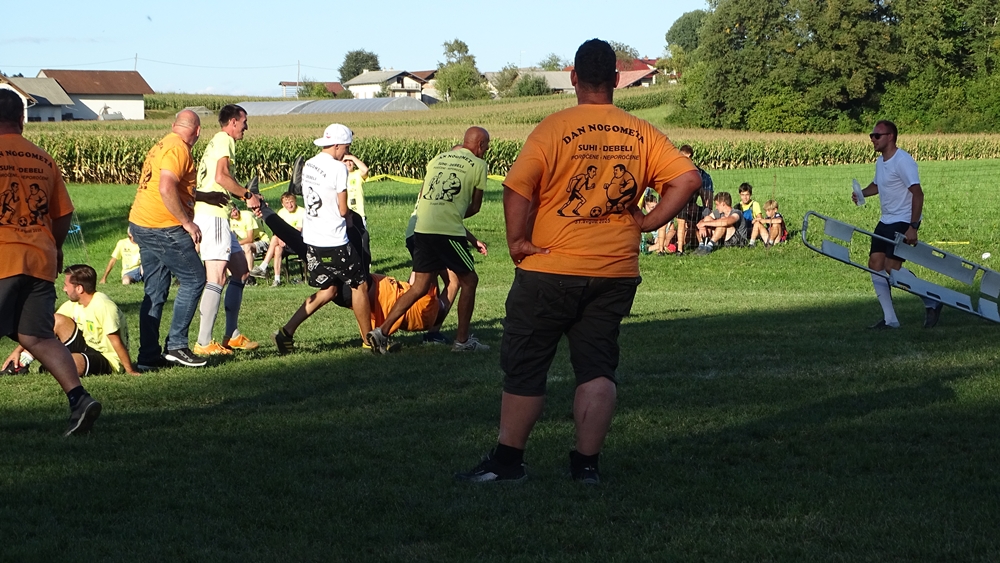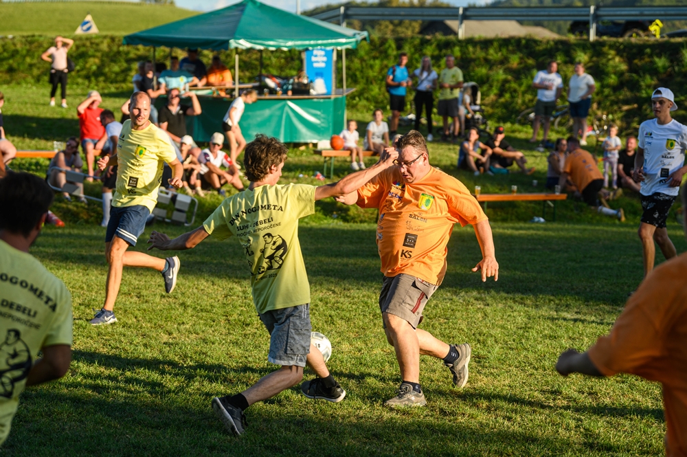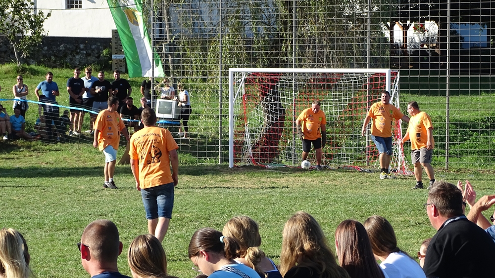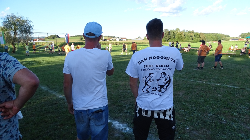Dopoldne je ob nogometu in kuhanju golaža hitro minilo in na igrišče so stopile nogometašice – POROČENE proti NEPOROČENIM. Tekma se je začela z nekaj zamude, saj je sodnica »Ivana iz Ukrajine« zamujala, a po odlični predstavi in zabavnih komentarjih so slavile poročene. Pred moško tekmo smo izvedli še tradicionalno dobusko igro »bacanje kamena sa ramena«, kjer je bil najboljši Uroš Kristan, ki je kamen zalučal skoraj 11 metrov in si s tem prislužil »prestižno« nagrado.