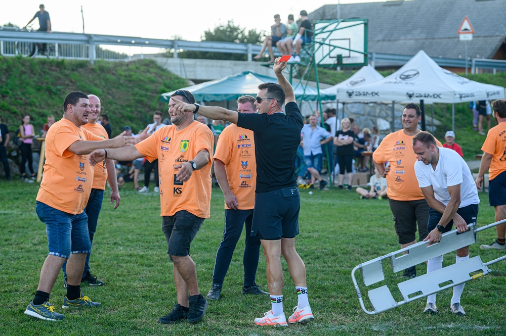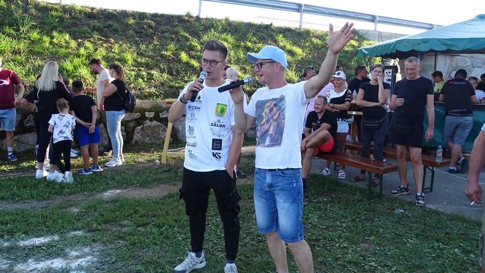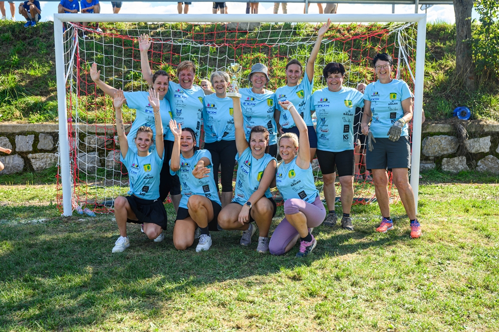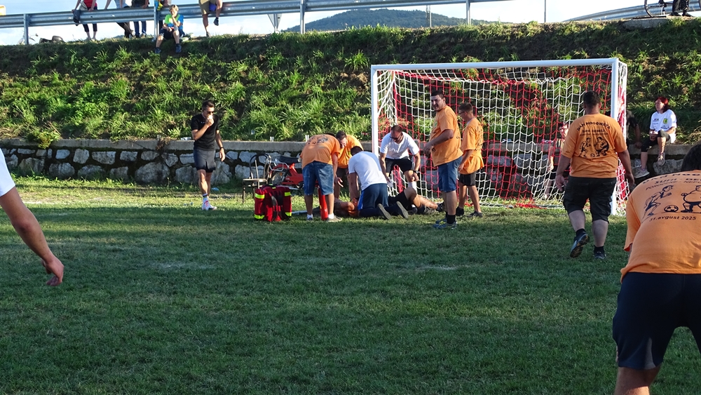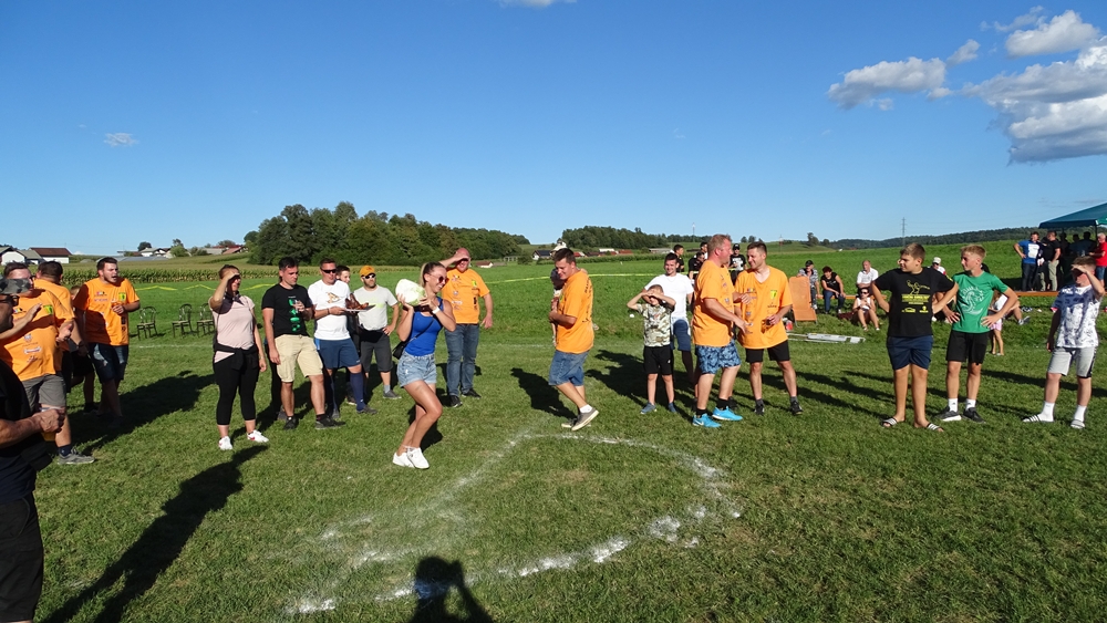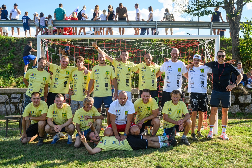 Dopoldne je ob nogometu in kuhanju golaža hitro minilo in na igrišče so stopile nogometašice – POROČENE proti NEPOROČENIM. Tekma se je začela z nekaj zamude, saj je sodnica »Ivana iz Ukrajine« zamujala, a po odlični predstavi in zabavnih komentarjih so slavile poročene. Pred moško tekmo smo izvedli še tradicionalno dobusko igro »bacanje kamena sa ramena«, kjer je bil najboljši Uroš Kristan, ki je kamen zalučal skoraj 11 metrov in si s tem prislužil »prestižno« nagrado.