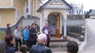 Tako smo leta 2011 na pobudo pokojnega župnika Jožeta Grebenca izdelali križe in prvič razmišljali ob postajah križevega pota od Marijine kapele na